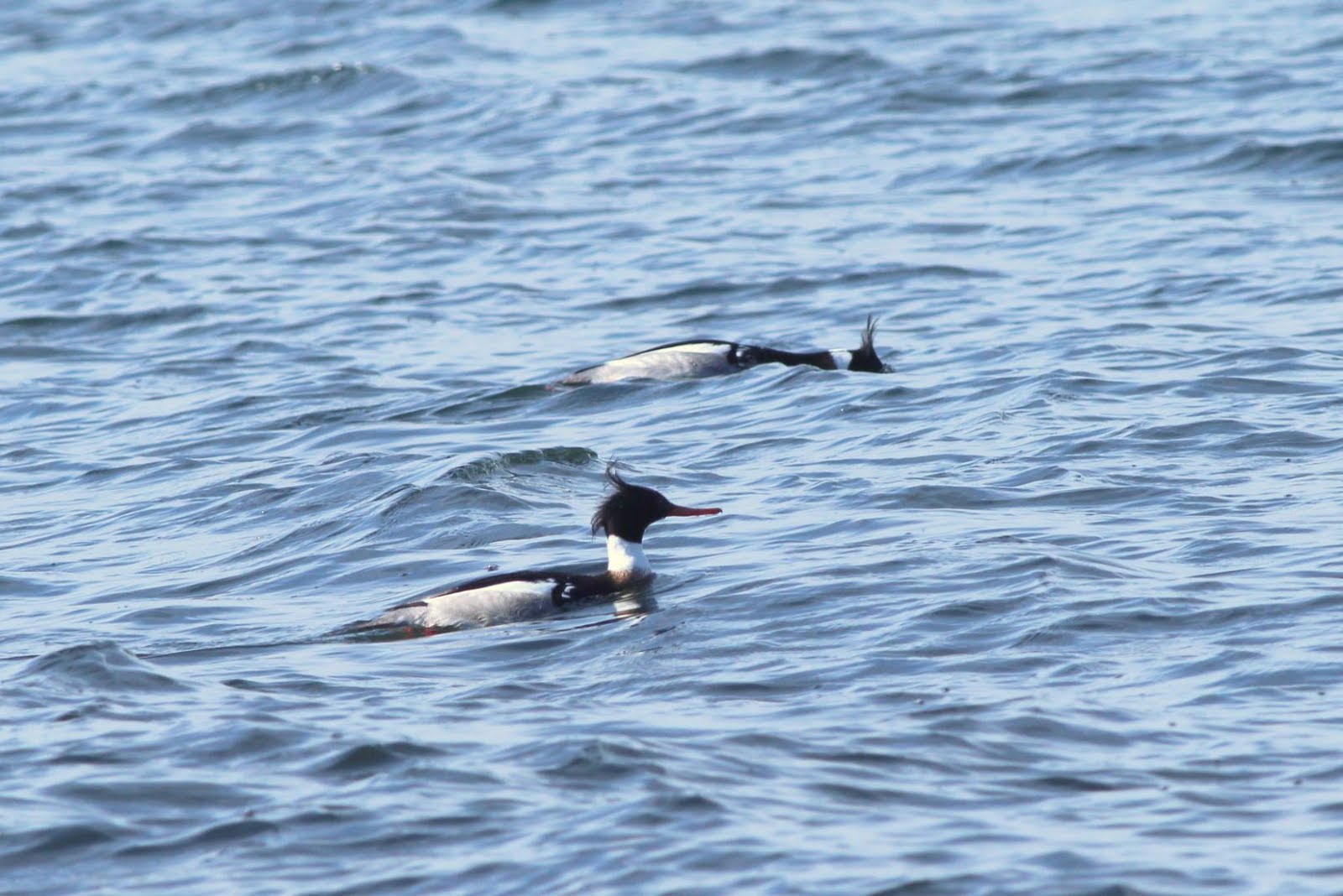 A bird I do see here frequently is the Red-breasted Merganser. However, it's usually only the females. Today the more colourful males were also present.